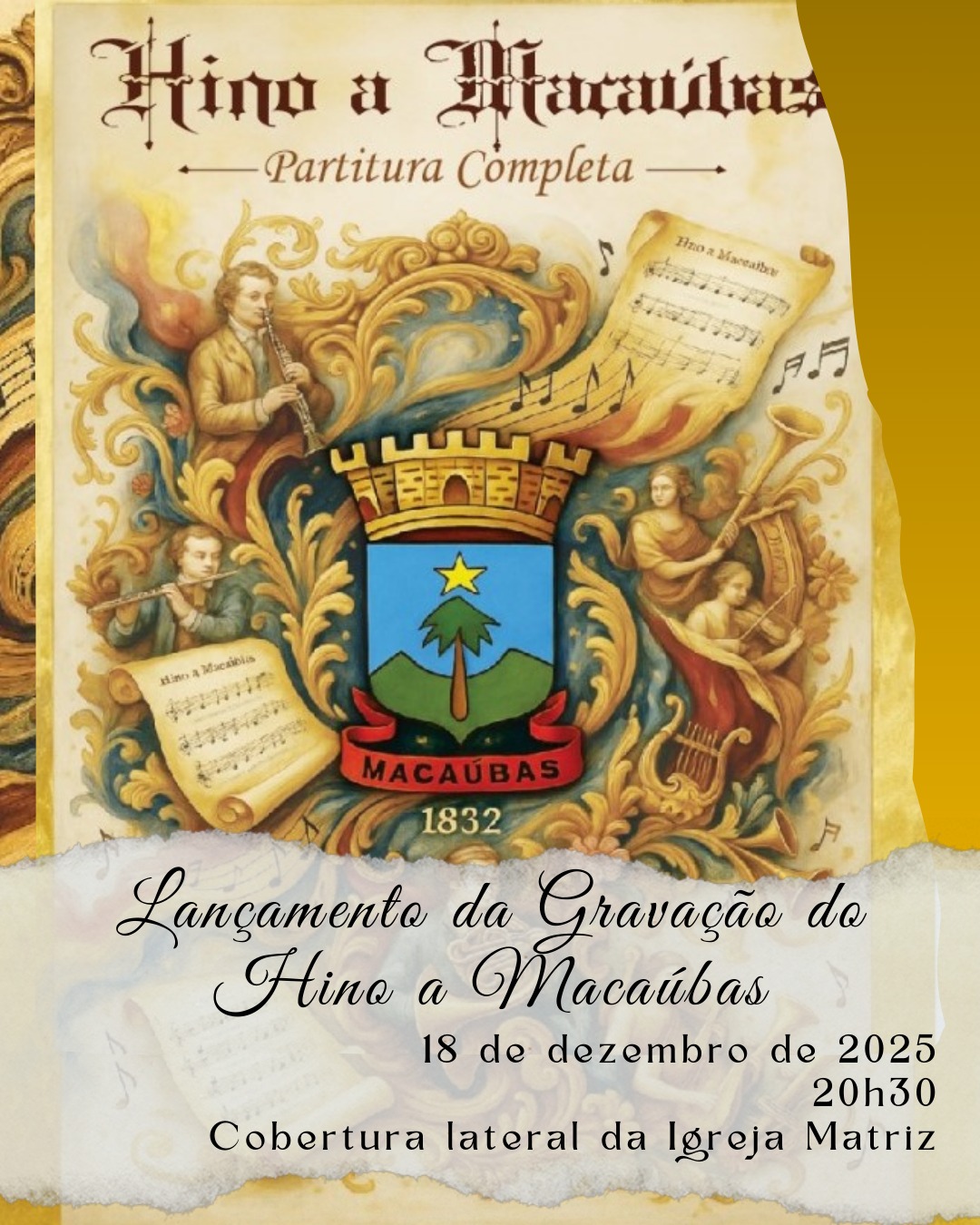 Macaúbas se prepara para viver um momento histórico e emocionante! No dia 18 de dezembro de 2025, a comunidade está convidada a prestigiar o lançamento da gravação oficial do Hino a Macaúbas, um marco que celebra nossa rica história, cultura e o orgulho de ser macaubense.