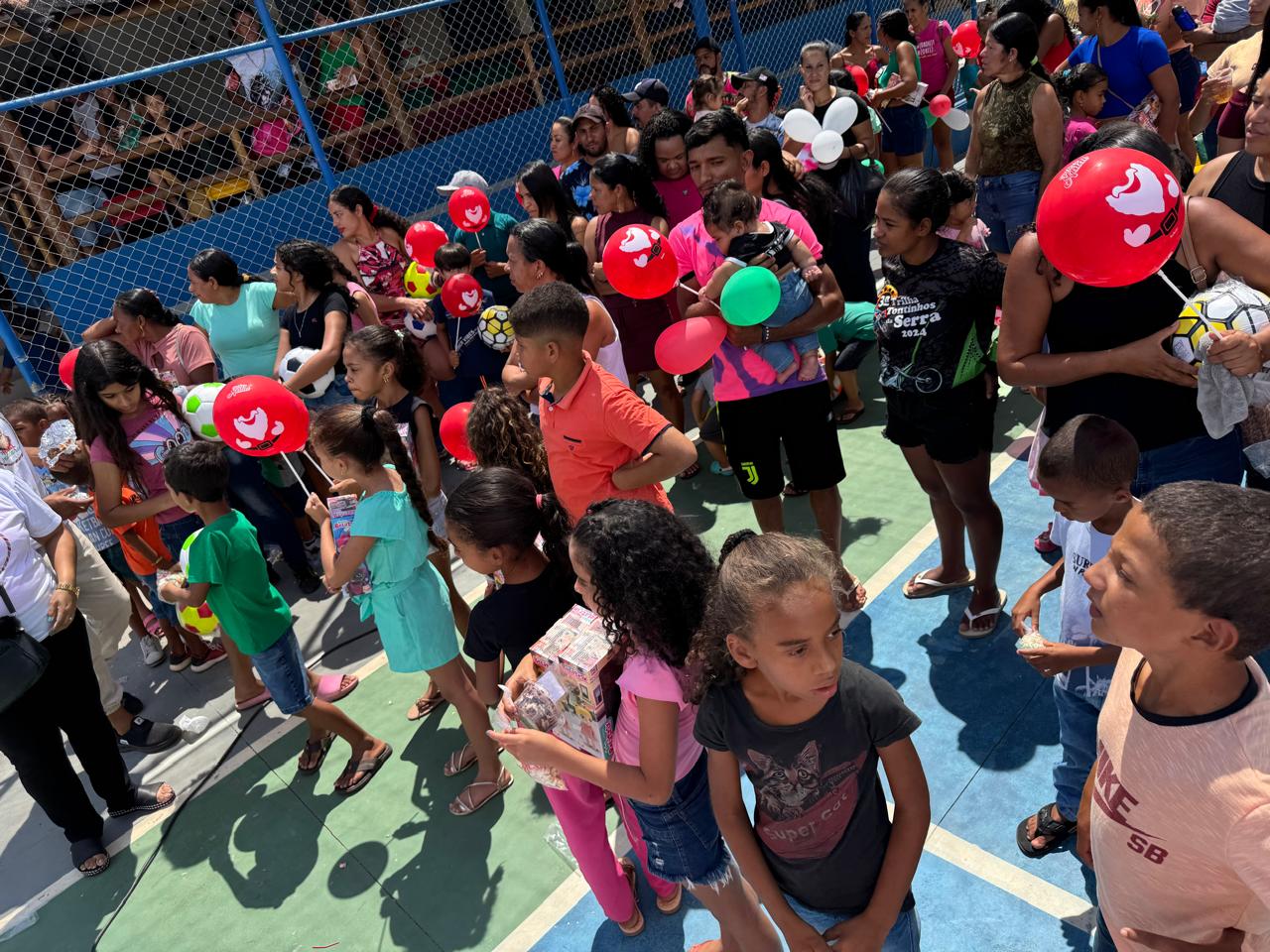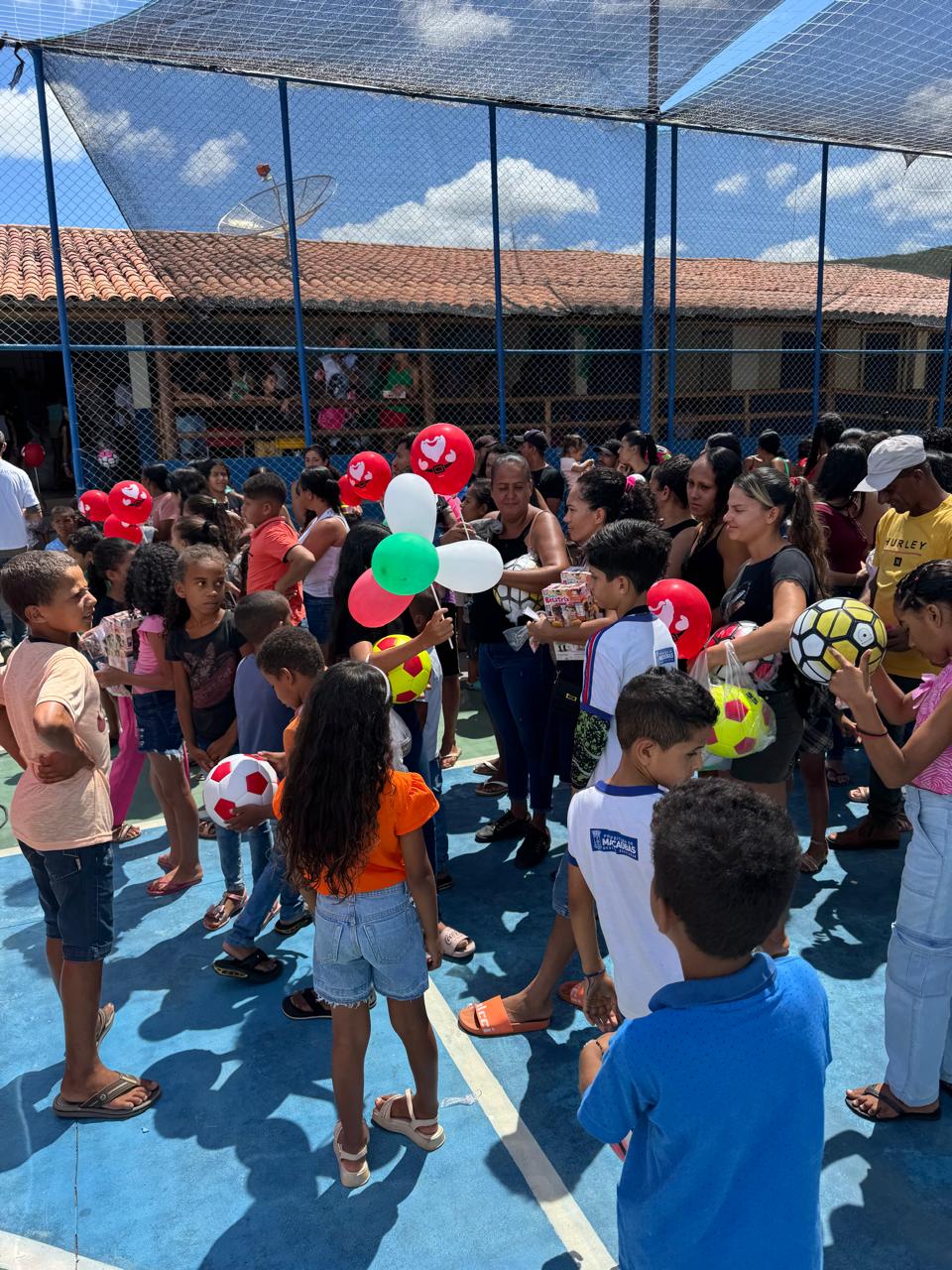 Em homenagem ao legado de Claudomiro Sousa, celebramos este Natal Solidário com muito amor e gratidão. O evento aconteceu no dia 21/12/2025, na Escola Municipal de Coqueiro, em Macaúbas/BA. Sob a organização de Claudio Sousa, familiares e amigos, o dia foi marcado por momentos de muita alegria, incluindo um lanche especial com doces e salgados, além de diversas brincadeiras que animaram a garotada, como o pula-pula e muito mais. O ponto alto foi a distribuição de presentes, que garantiu o sorriso das crianças do Coqueiro e comunidades vizinhas com a entrega de bonecas e bolas.