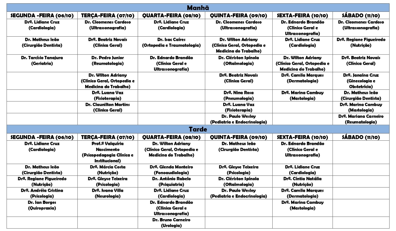 CLÍNICA IRM: AGENDA ATENDIMENTO SEMANAL – OUTUBRO – 2025